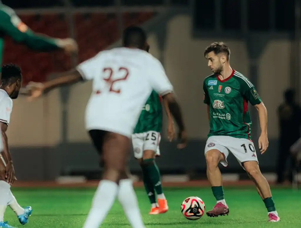 مباراة الجبلين ضد الاتفاق ، اللاعب ليو لاكروا في الدقيقة التاسعة من بداية اللقاء