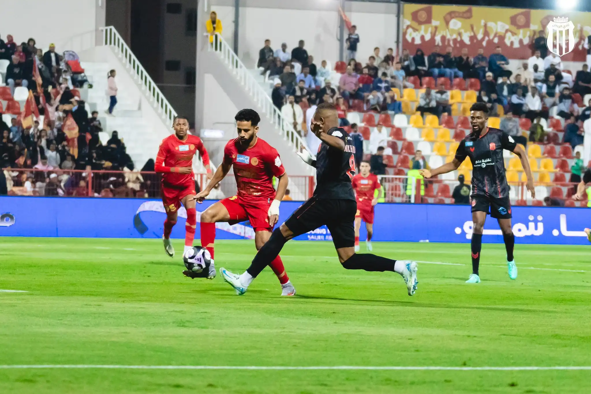 نكودو هدف ضمك الثاني لتنتهي مباراة ضمك ضد الرياض بالتعادل بهدفين لكلا منهما.