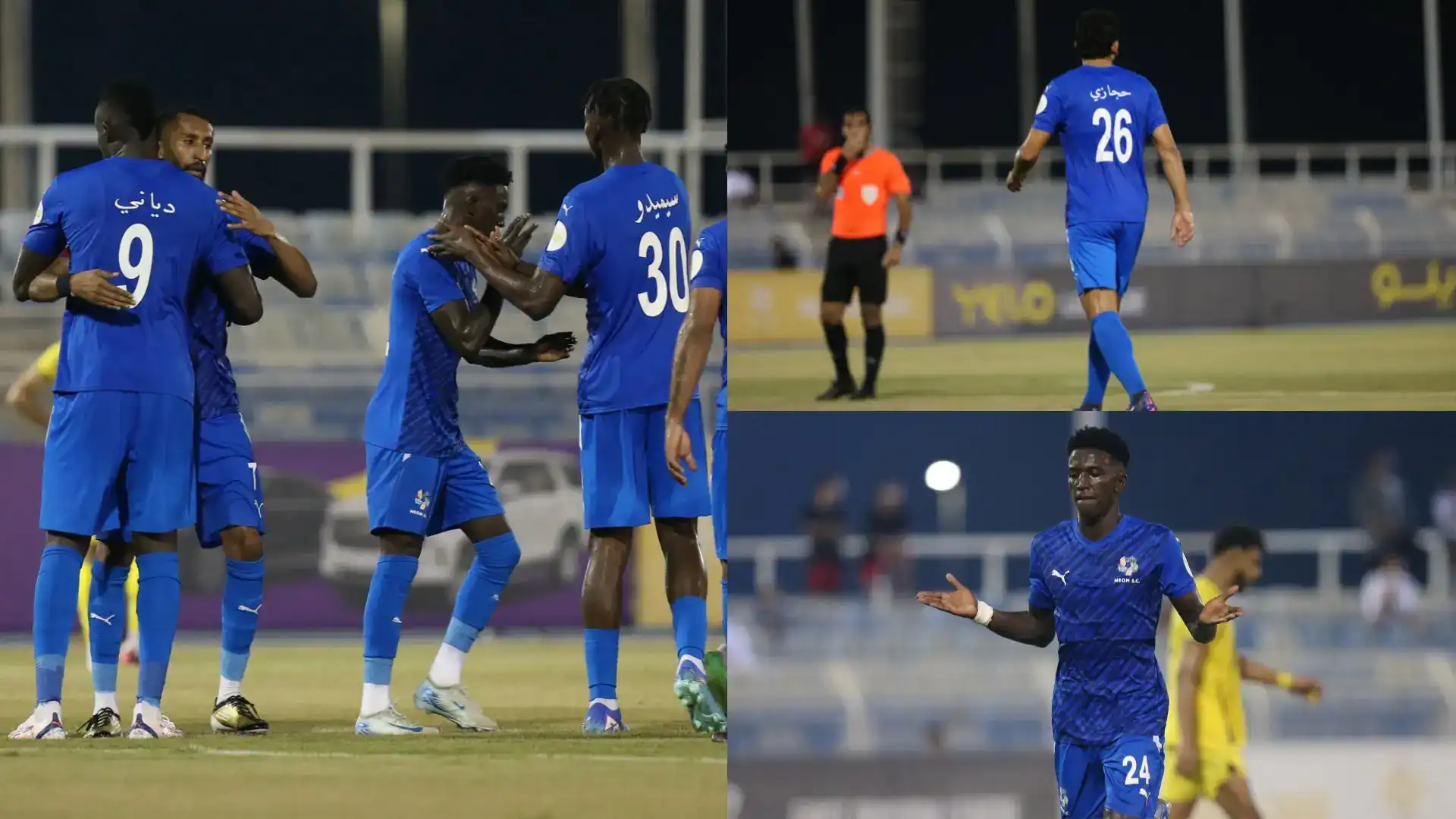 الدقيقة الـ38 طرد لاعب نيوم، محمد الدوسري، واستكمل الفريق المباراة بعشرة لاعبين