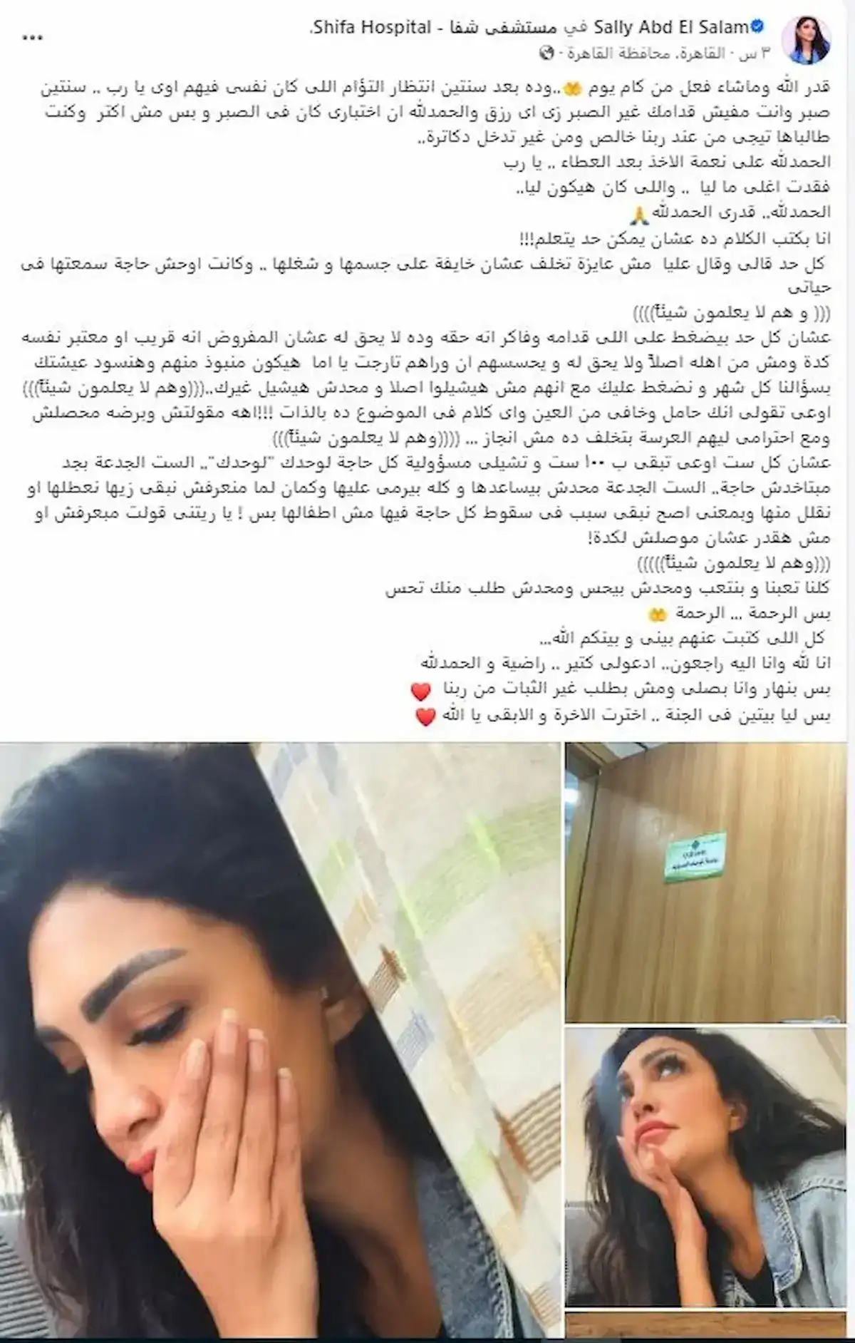 ماذا قالت سالي عبد السلام بعد فقدان حملها؟