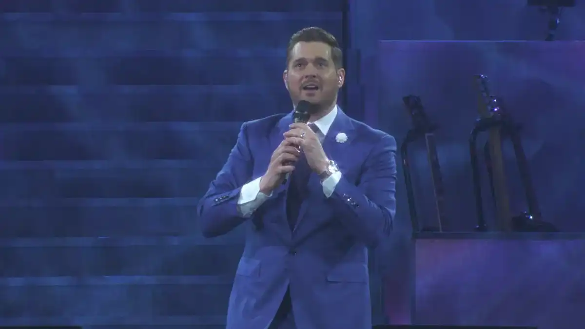 النجم اللبناني وائل كفوري والمغني الكندي الشهير مايكل بوبليه، على منصة حفل