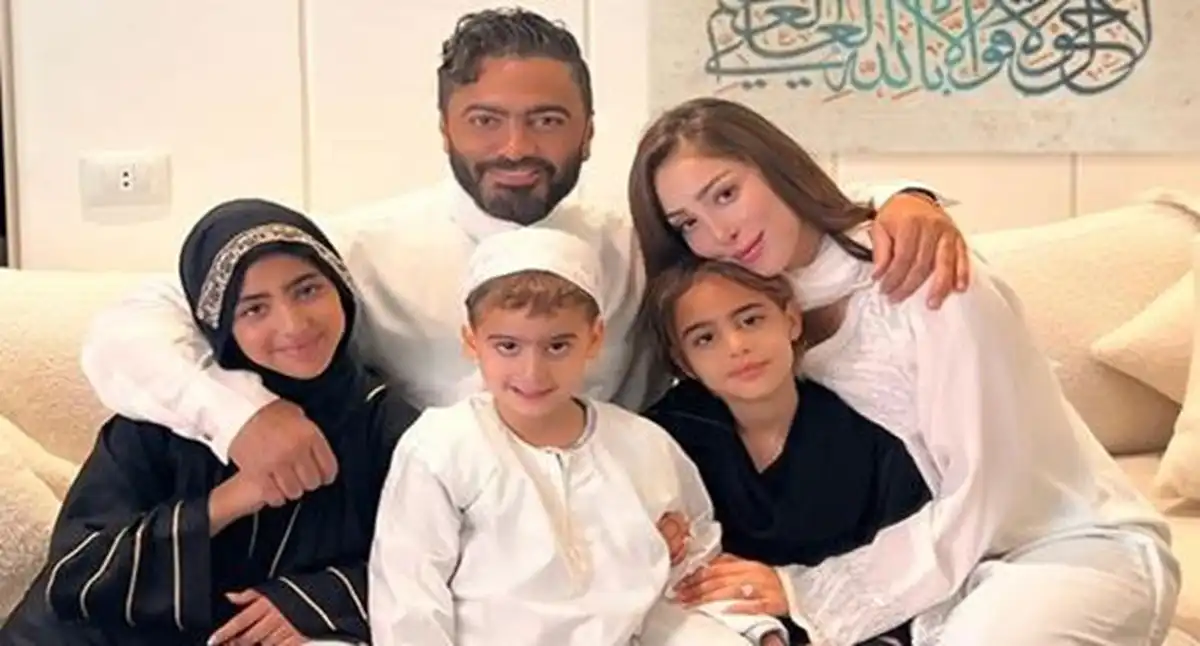 نجل تامر حسني "آدم" والنجمة المغربية بسمية بوسيل حالة كبيرة من القلق