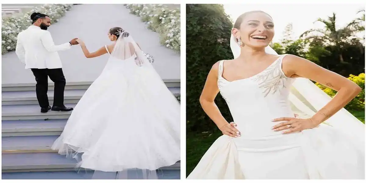 ولم ترتدي أمينة خليل فستان ضخما في حفل زفافها في