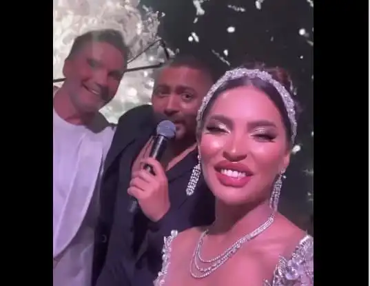 الانظار خلال حفل الزفاف قيام العروسة بأخذ الهاتف الخاص بها و التقاط فيديو وهي