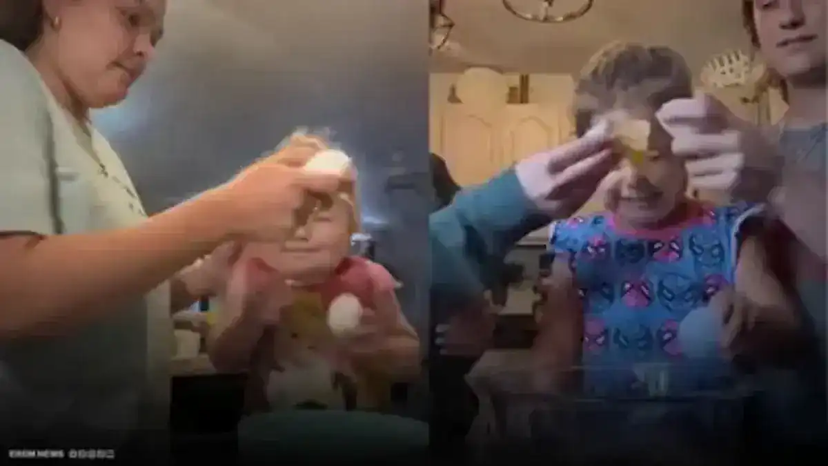 التفاح، وأثناء تصوير الفيديو على منصة تيك توك كسرت الأم البيضة على جبهة ابنتها، مما تسبب في